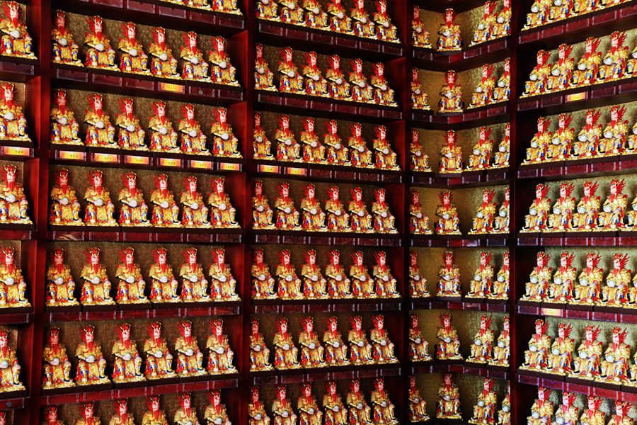 进鸡笼山寺院要收门票的,走进去,古色古香的殿堂,雕梁画栋,富丽堂皇。寺院里,钟声悠扬,轻烟袅袅。喇叭里响着菩提梵唱,曲调庄严净化心灵。坐在一隅,倾听佛教梵音,心里有一种莫名的感动,仿佛置身极乐圣境,于袅袅音声中细细体味人生之真谛。