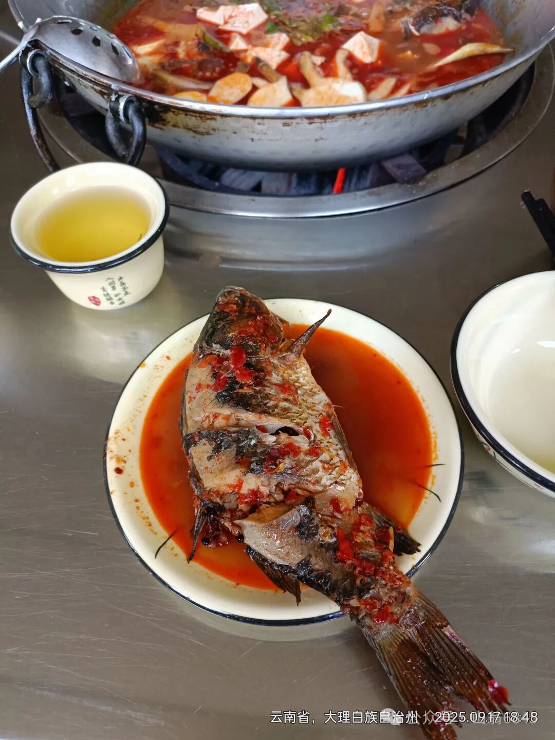 “山穷水尽疑无路,柳暗花明又一村”,突然左首有路可到寺院。殿堂规格整齐,雕梁画栋,色彩鲜艳,遍布腊烛。最欣喜的是,有水泥台阶通向上层,脚下顿觉轻松了许多,如释重负。