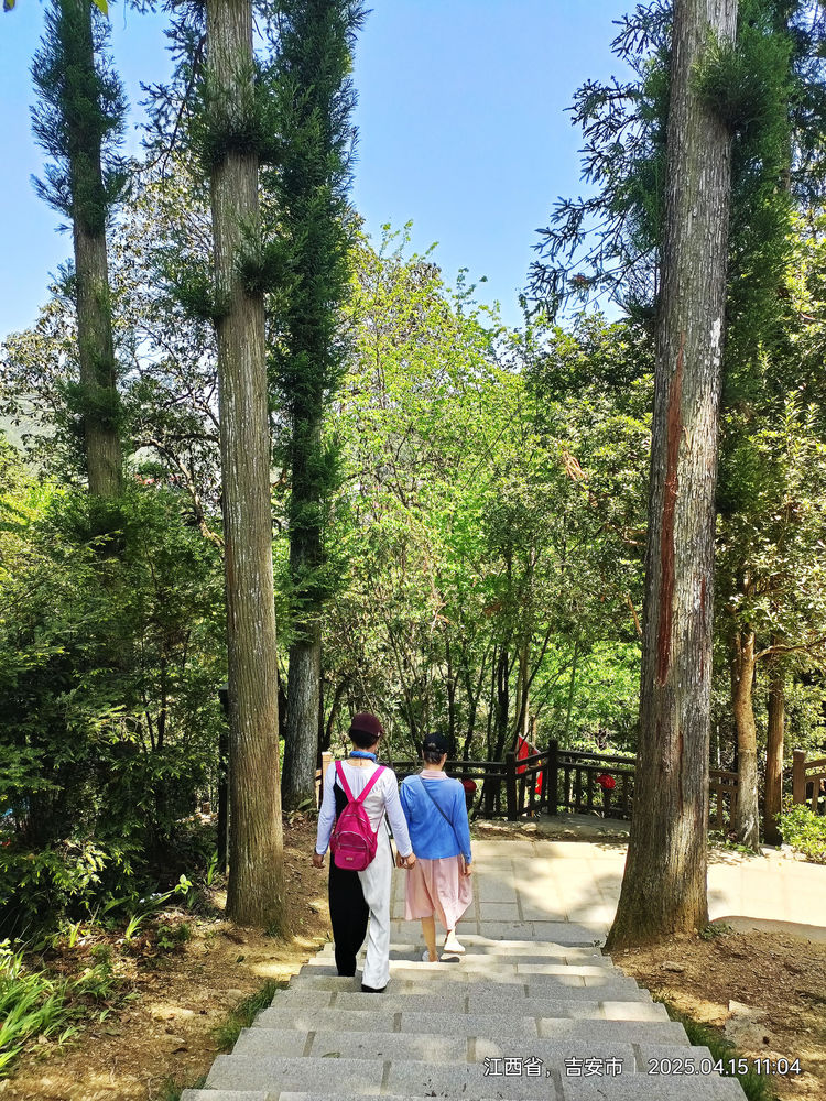 接下来我一步步登上这座郁孤台。这座台子是当地2003年新建的,早已不是辛先生登过的那座台子了。我所看到的是满目的苍翠以及被其零零碎碎遮挡的高楼。当年辛老登台远望,看到的是那些高高低低的山,的想到的是朝廷,再看那悠悠清流,想到的是当年那些流离失所的难民。但一切都如这流水一往无前,已是无法改变了,只好静听那叽叽喳喳的鹧鸪声了。