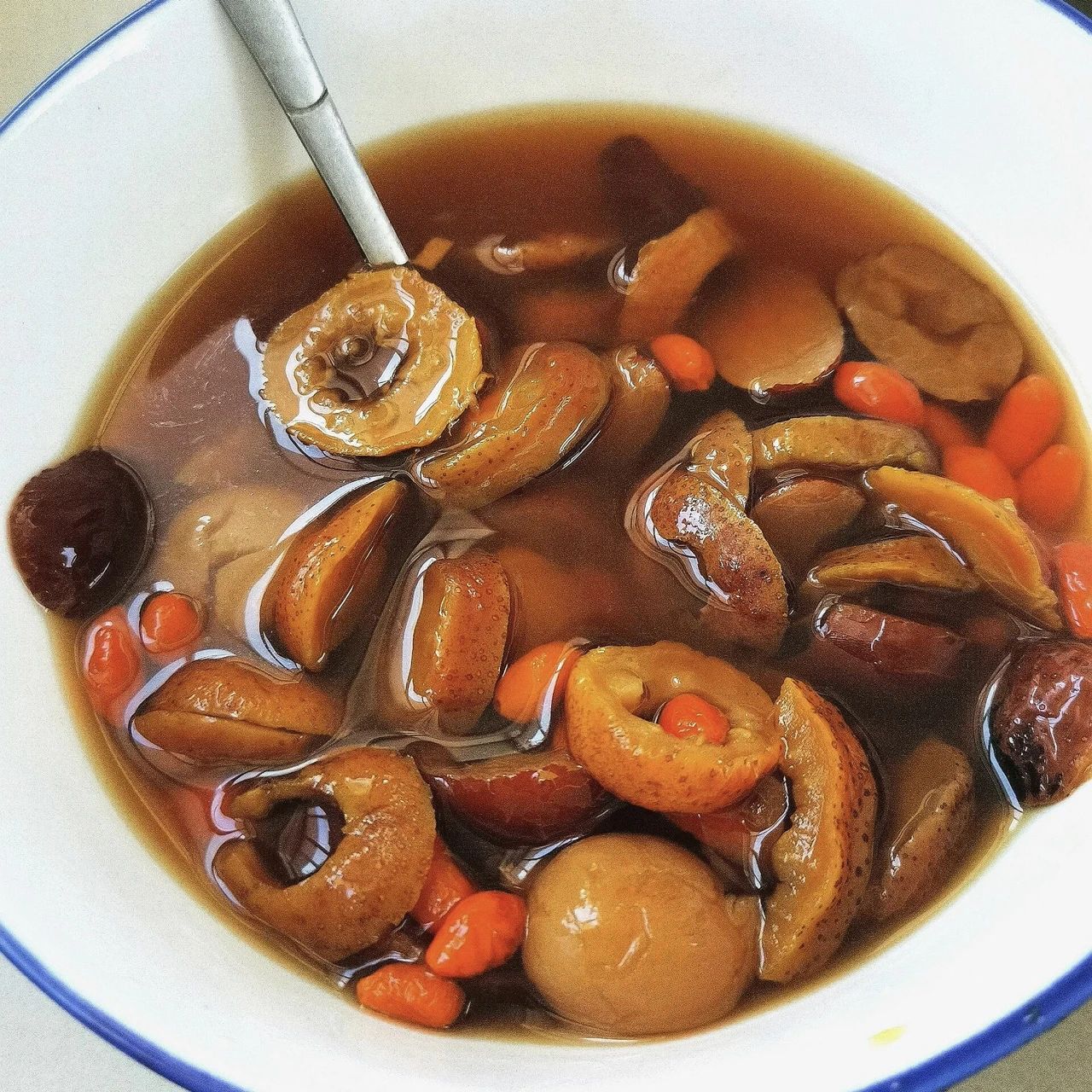 3️、关火前扔几粒枸杞,红糖化开即可,喝汤吃果肉