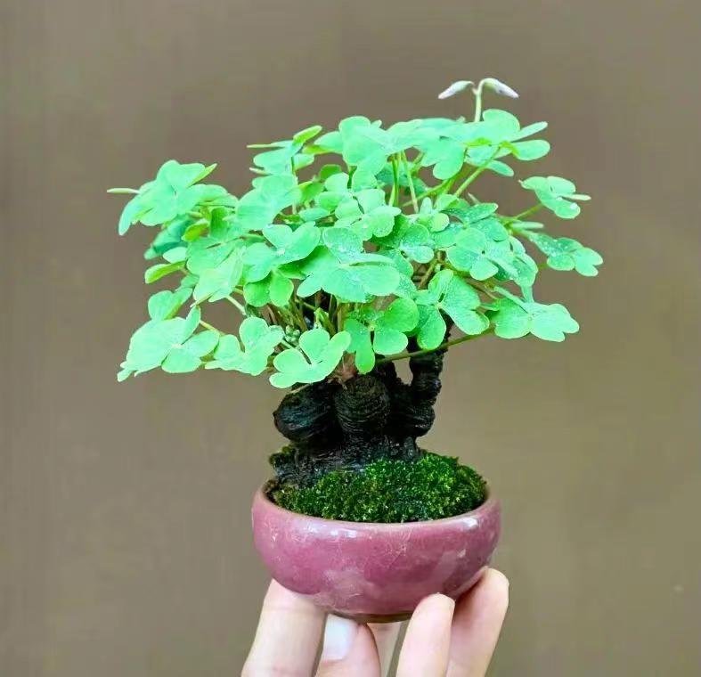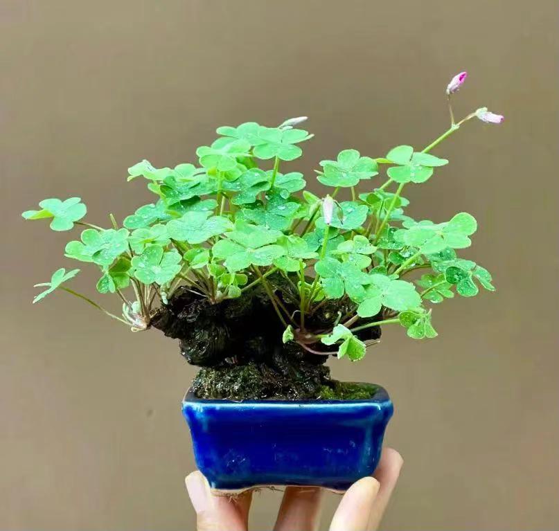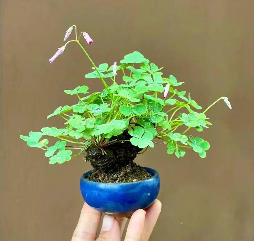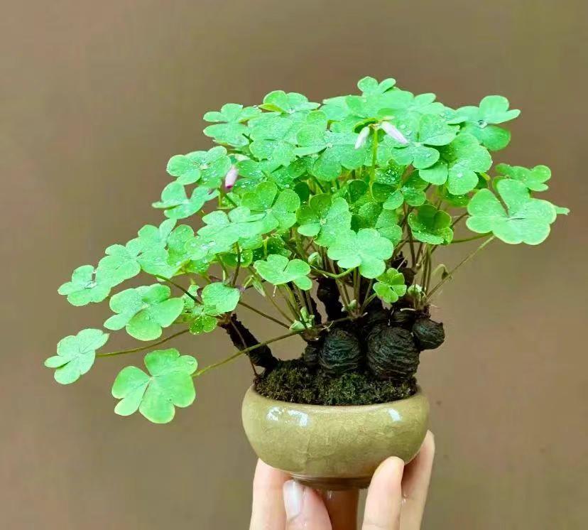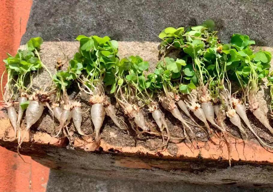 酢浆草的根部是白白嫩嫩的大头根,酢浆草做盆景好看又有气质的秘诀,就是用这个大白根做提根,增添一份别致的气韵。