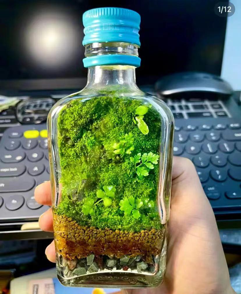 找一个玻璃瓶,装点砂石搭配着养青苔,也是很治愈很很有趣的呢。