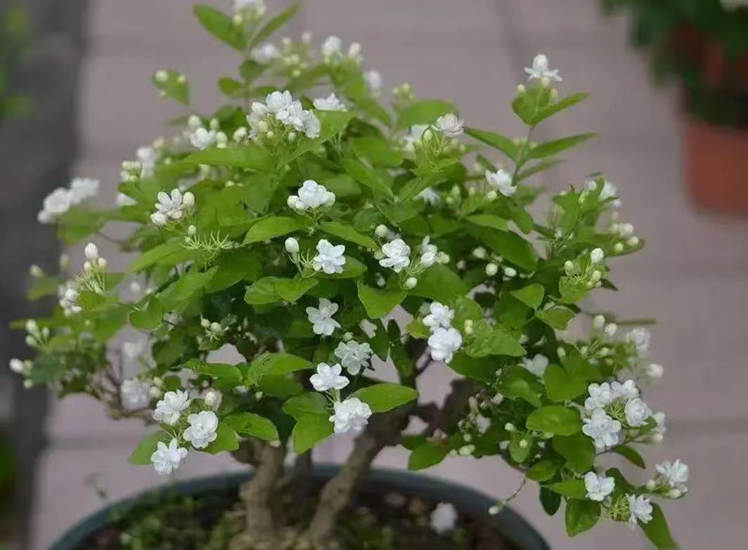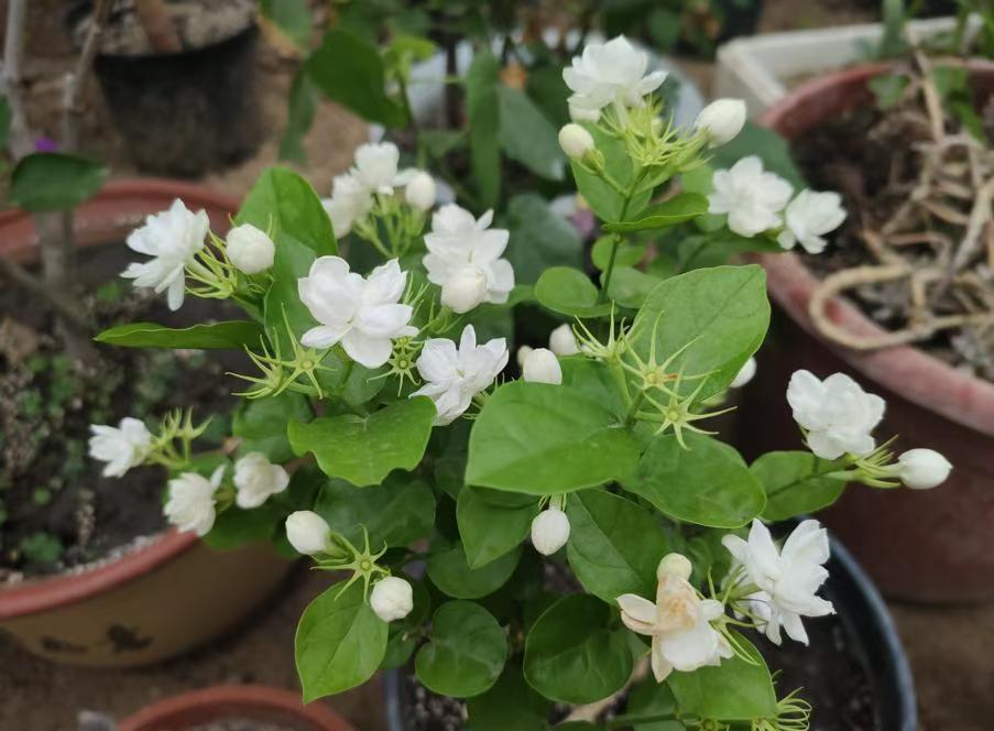 如果冬天室内温度比较合适,光照比较好,还可以不断地开花,所以这种茉莉花一直深受人们的喜爱。在夏天养护多晒太阳,盆土表面干透了浇水,并且每个月浇两到三次的肥料,配合着修剪打理才能一茬接一茬的开花不断。