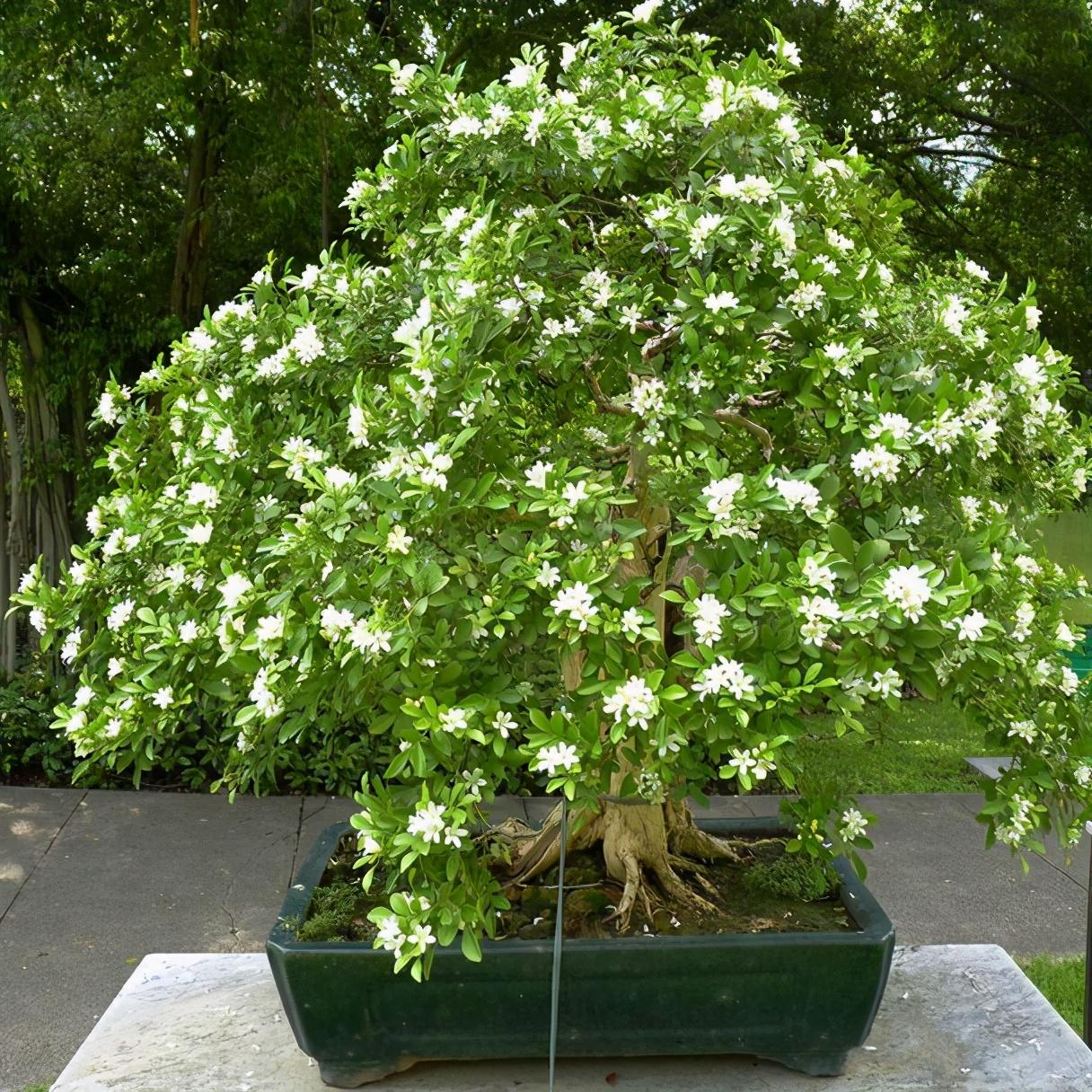 养的大的九里香,不建议放在室内养护,可以放在阳台上或者露台上养护,因为香味儿太过于浓郁了,一朵花就能闻到满屋的花香,而且九里香是多年生的小灌木。可以把它养成小花树,很多人把它修剪成盆栽盆景,枝干遒岖,苍劲古朴,花开不断,价格也是非常昂贵的。