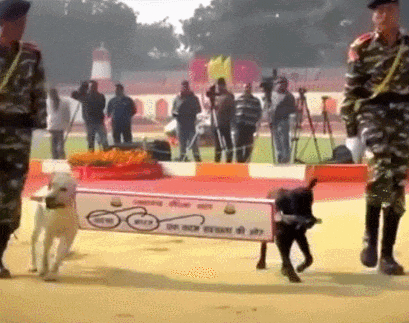 整个阅兵都充满着神圣严肃的气息,但还是有几个“新狗蛋子”,在狗群中充当着显眼包!