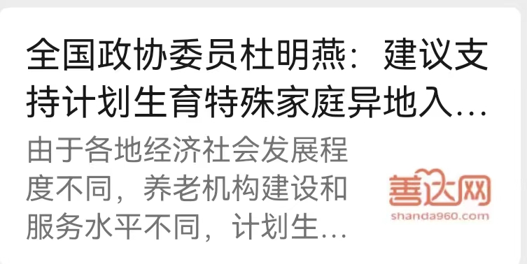 不负重托、不辱使命,3月10日上午,圆满完成各项议程的全国政协十四届二次会议在北京闭幕。会议期间,全国政协委员、内蒙古自治区满洲里市政协副主席杜明燕带来了支持计划生育特殊家庭异地入住养老机构的提案。