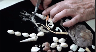 88岁奶奶用鱼骨作画