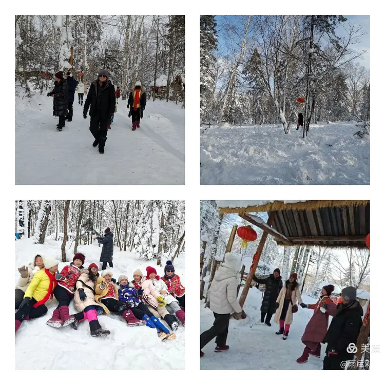 第一次见到这么厚积雪的家人们兴奋不已。不禁一个接一个的在雪里打起了滚,打雪仗,追逐嬉闹,每一位家人的脸上都漾起了孩童般的灿烂笑容,开心的笑声在林海雪原里回荡。年长些的家人就相伴慢慢的散步,聊天,开心的看着其他家人在雪地里撒欢儿。