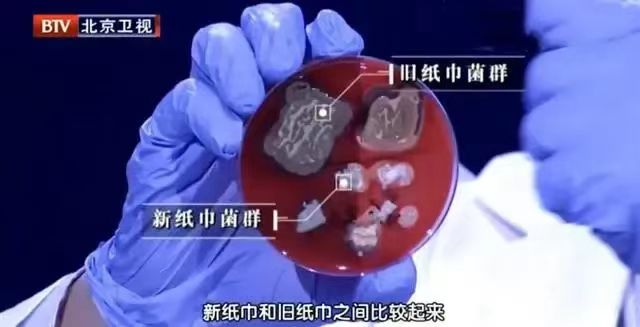 新旧纸巾的菌群对比。(图/北京卫视《我是大医生》截图)