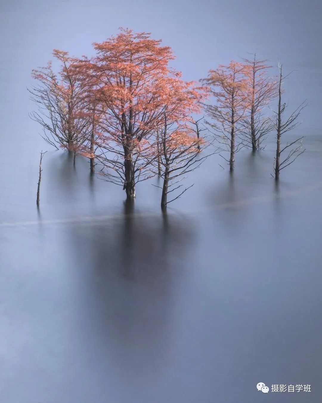 图5是只保留水面倒影,让照片像艺术作品一样。图6是平常的倒影,但画面中有明暗对比,所以不单调。