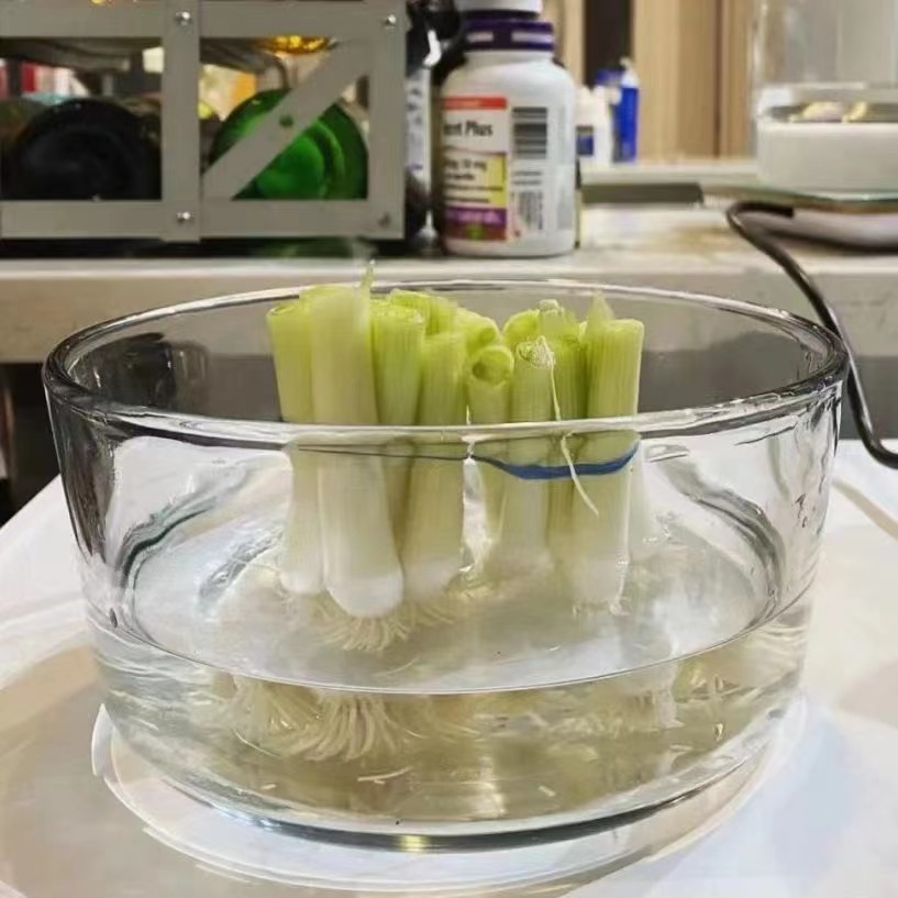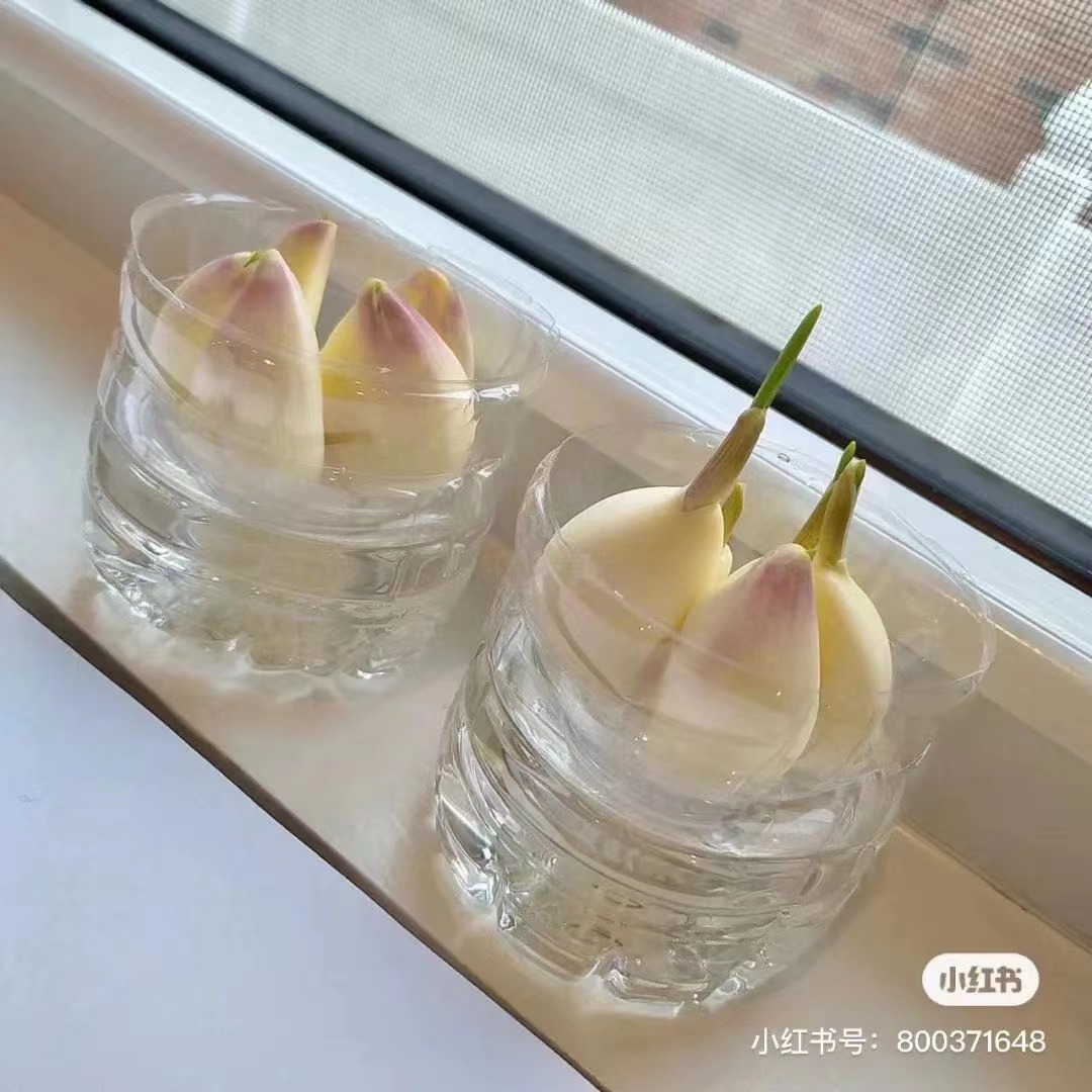 将白色根部放在水里,水量没过须须头即可(水量过多会容易发臭)。