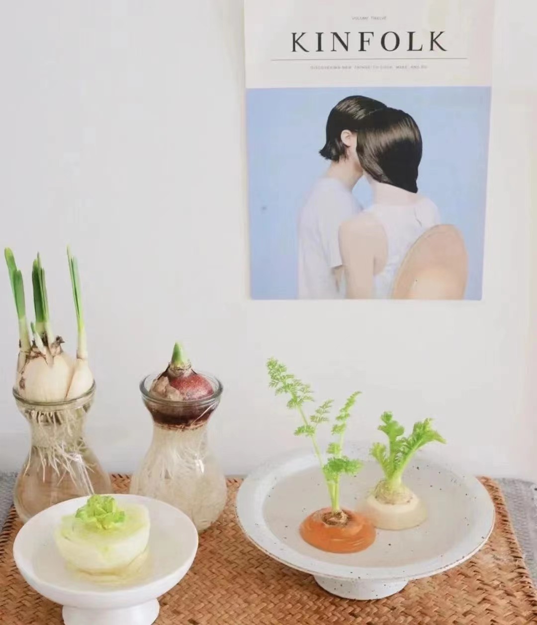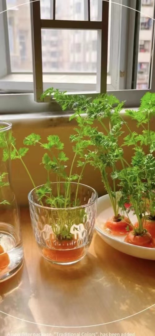 • 另外白萝卜、胡萝卜或青萝卜,将萝卜头养在水中,也能得到一份美丽的绿植哟~