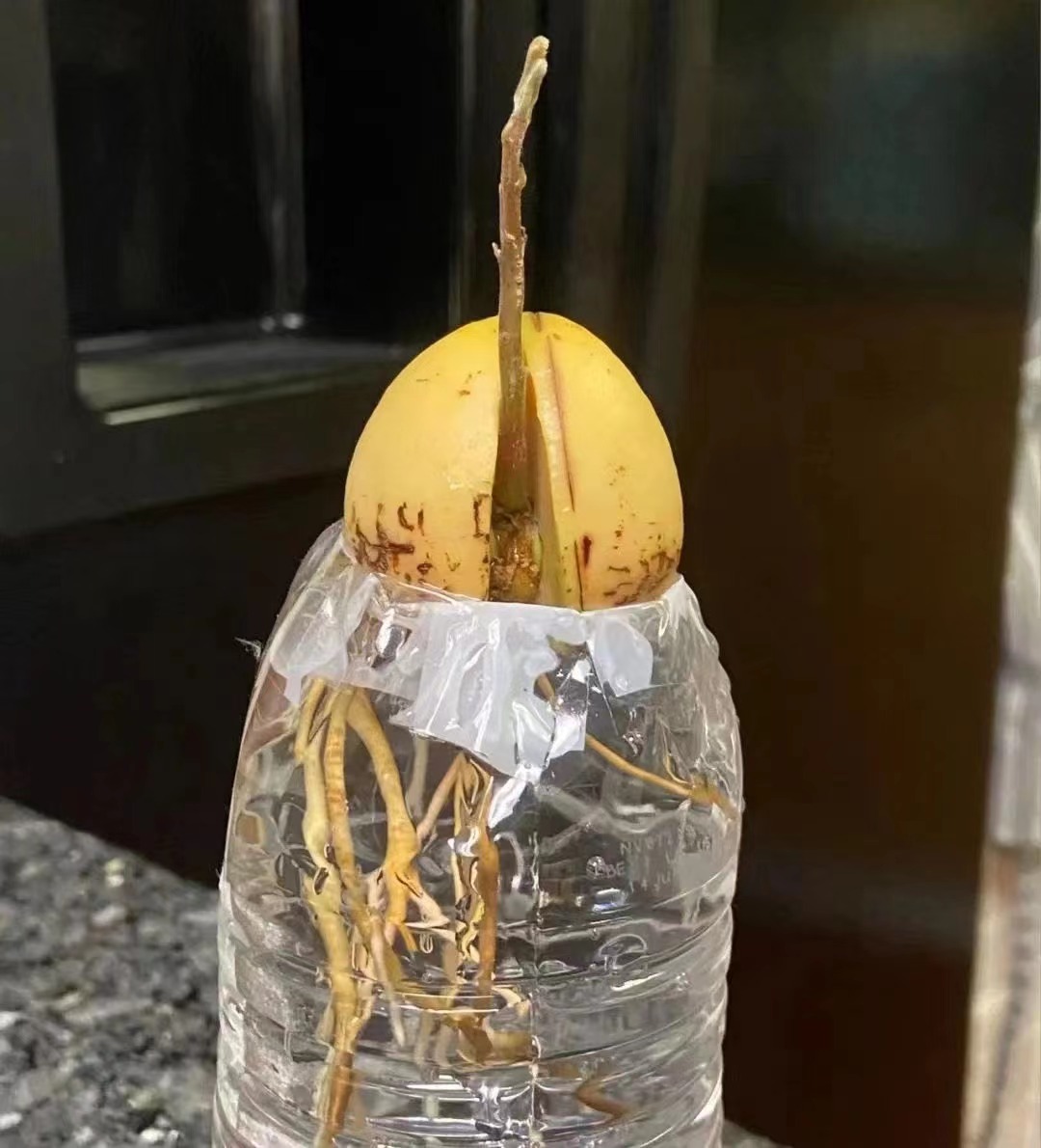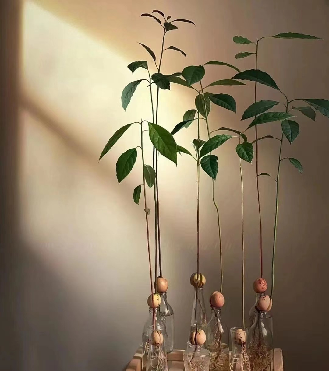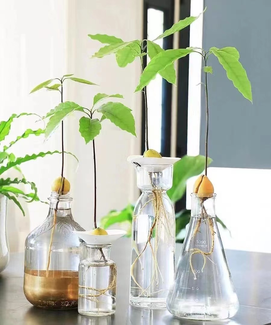 • 牛油果核水培后 = 观赏绿植