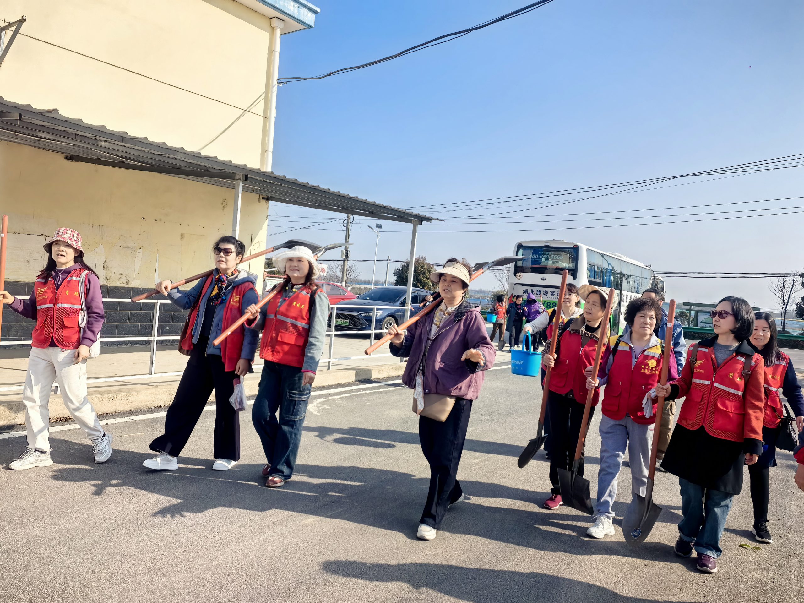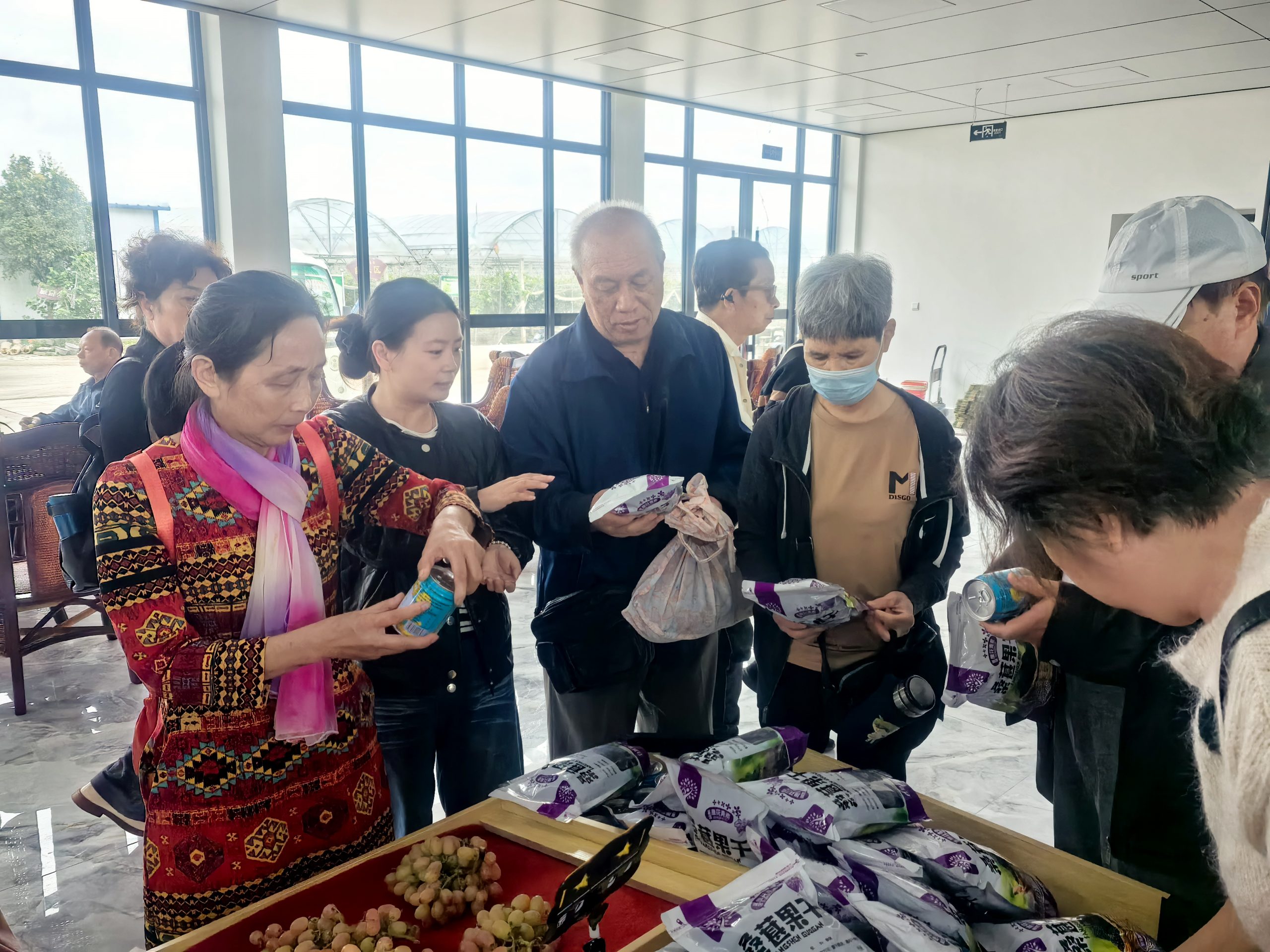 随着时代的发展,国家的政策越来越好,乡村建设也充满勃勃生机。参观完磨山突围纪念馆后,老人们来到附近的韵鹤采摘园,参观游览,品尝当地的土特产,感受孝昌王店人的热情。