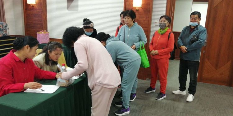 在2020年10月1日这一天,我们相约来到富豪商务酒店的会议室,工作人员早已等候并欢迎家人们,发放月饼、水、口罩,并担心天凉还为大家准备了开水。