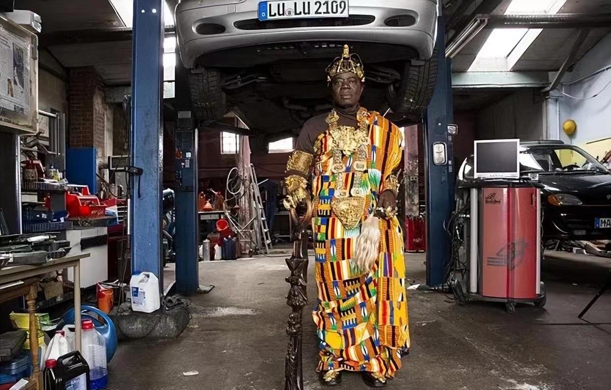班萨真的没开玩笑,他确实是非洲加纳霍霍埃部落的国王,至于为什么会在德国干汽修,原因很简单,因为穷!