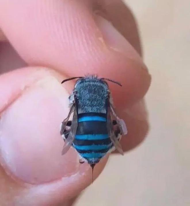 12. 北方蓝带蜜蜂的那一抹蓝色仿佛是大自然赋予它的独特标志,让它在蜜蜂世界中脱颖而出。