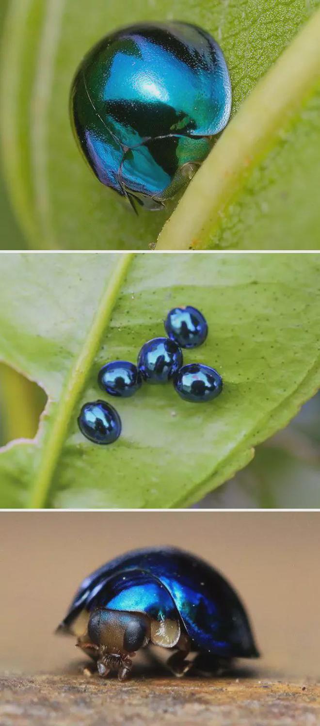 2. 钢蓝瓢虫就像是穿着一顶闪耀的头盔,保护着它娇小的身躯。