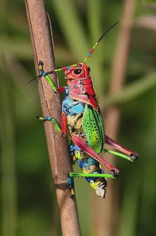 3. 五彩斑斓的蚱蜢就像是大自然的艺术作品,用色彩和形态展现了生命的活力。