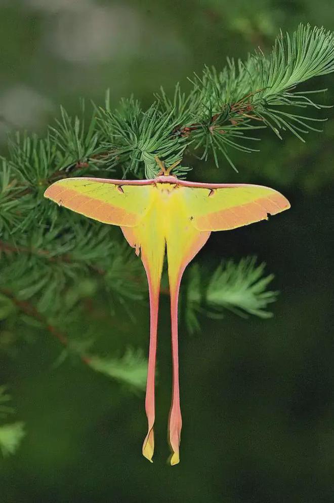 5. 长尾大蚕蛾飘逸的身姿仿佛是一个风筝在翩翩起舞,为大自然增添了优雅的气息。