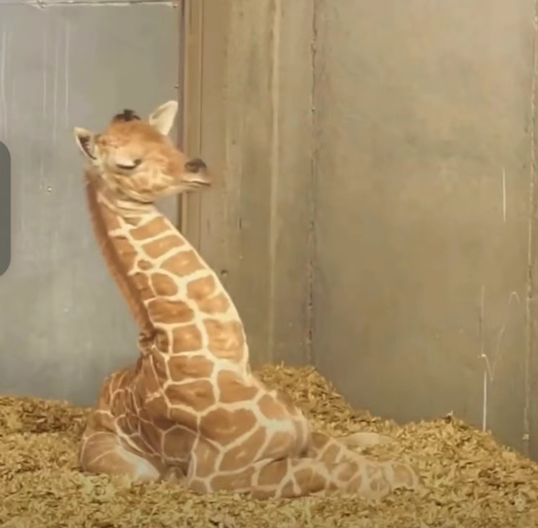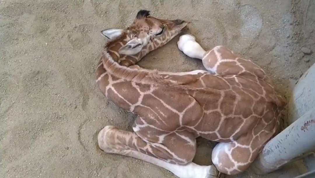 而在日本高知县动物园诞生的小长颈鹿,则是睡出了标准“天鹅姿势”的扭曲升级版