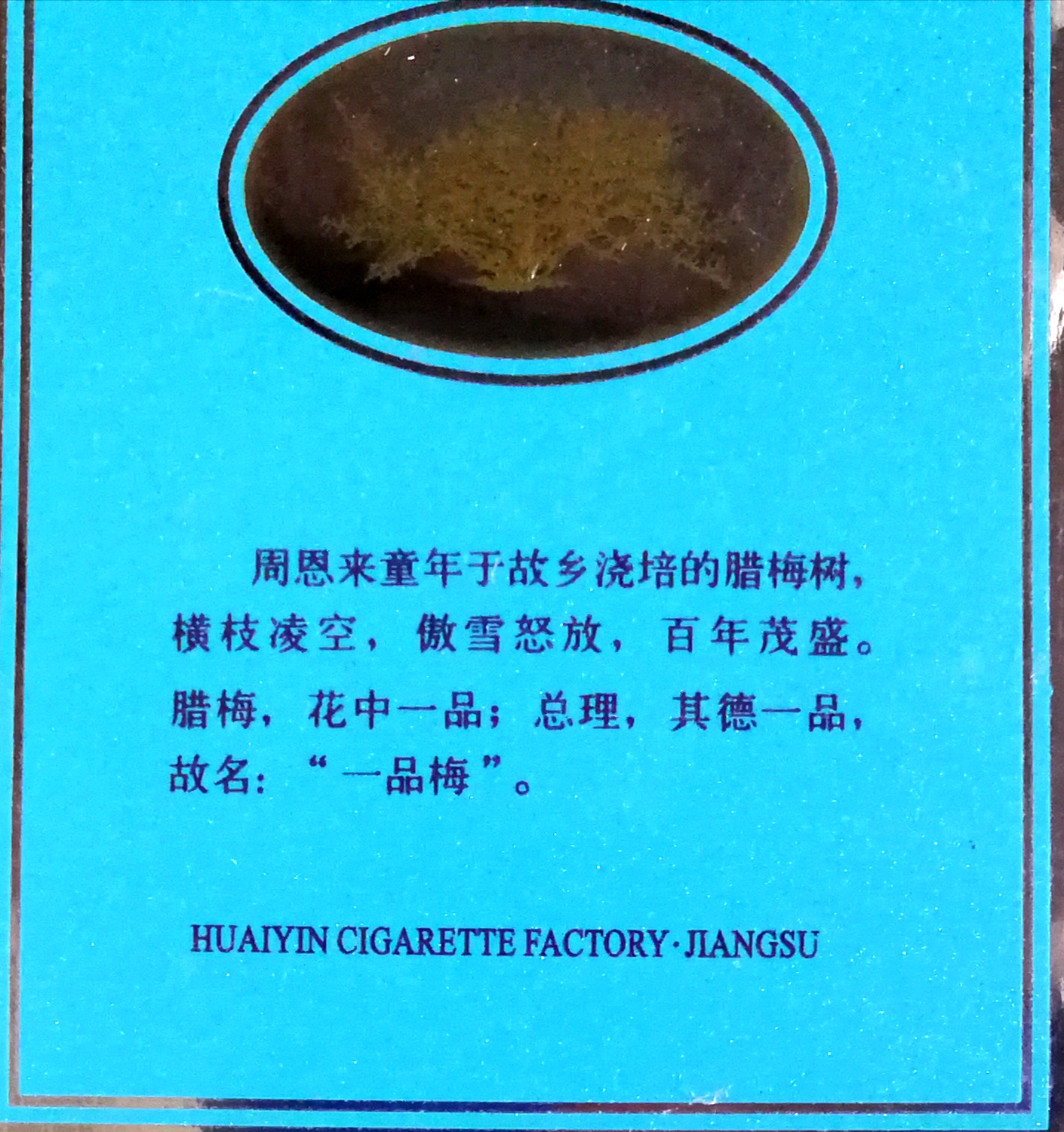 上个世纪,九十年代初,淮阴烟厂为表达故乡人民,对周总理的爱戴和缅怀,以周恩来故居里的梅树为寓意,创牌《一品梅》,意为周恩来英名增辉,给周总理故乡添彩。