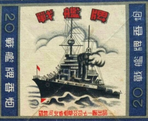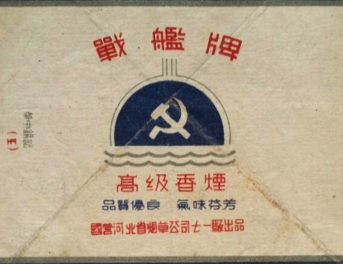 【战舰】牌,首次把党徽用于烟标图案,彰显了工农民众、镰刀铁锤的无比力量。
