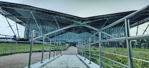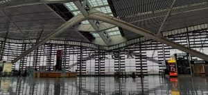 青岛北站呢,看上去像一个腾飞的海鸥,宏伟大气,挺拔而有张力,以博大的胸怀,笑应八方来宾。站里,是钢柱钢梁框架结构,抬头看去是海鸥的骨架,稳固而又条理,四周的线条特别美,虽然今天阴天,阳光不太好,但朝着太阳的方向望去,特别好看。