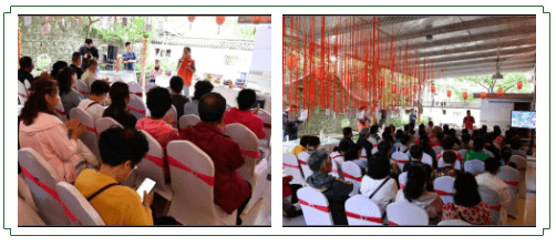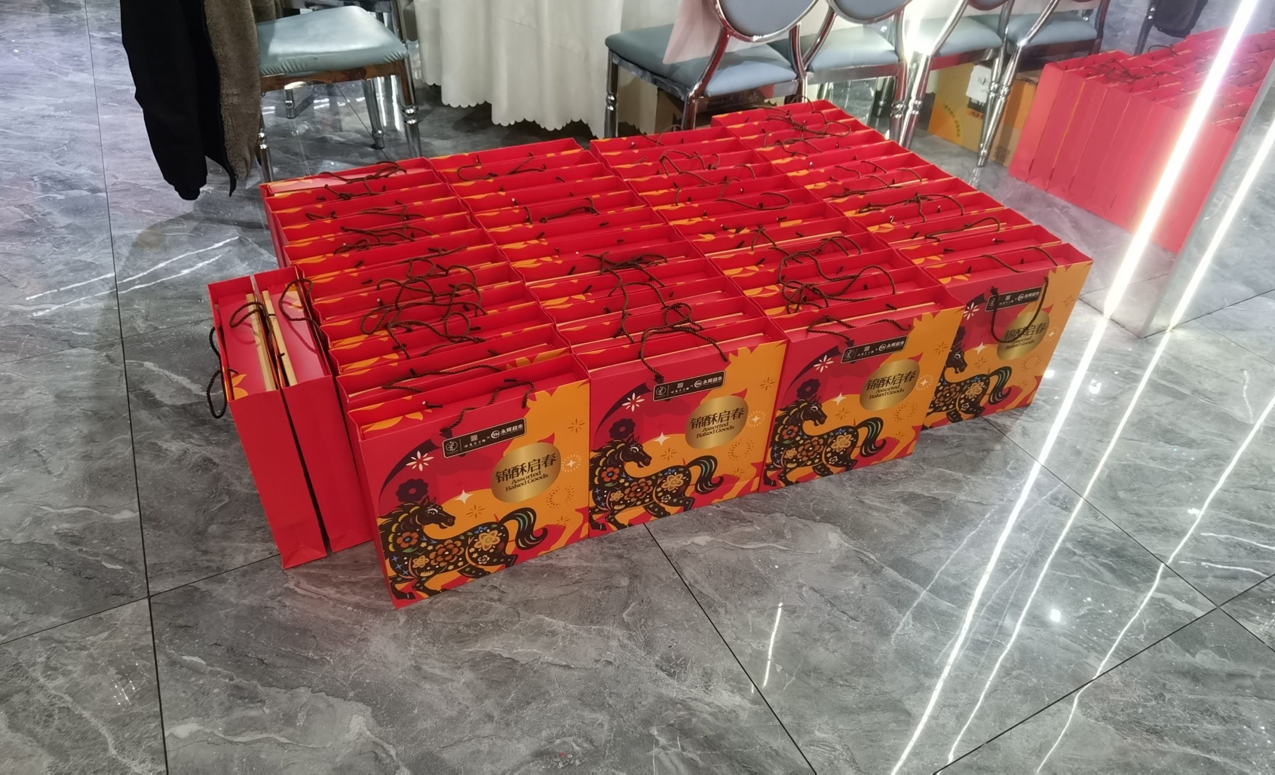 活动全程充满贴心与惊喜:入场时,每位家人都收到精心准备的伴手礼——红色提袋内装有笔记本、笔、扑克、可爱熊猫存钱罐与暖心红包,仪式感满满;活动结束,主办方还送上西安知名品牌志宽精美糕点,让温暖与甜蜜带回家。丰盛的团圆午宴上,大家围坐一桌、畅谈欢笑,久违的热闹与温馨,填满了每一个角落。