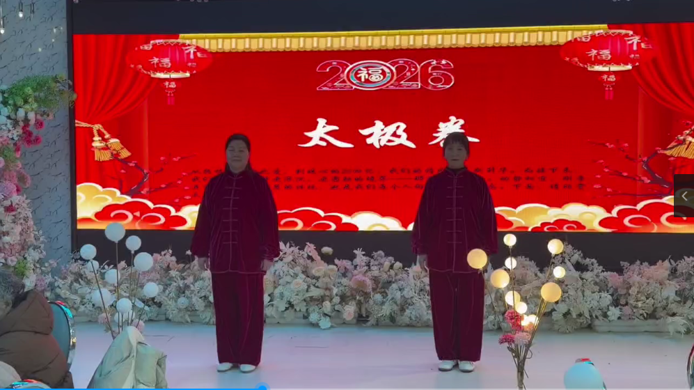 张家慧女士暖心开场,向每一位家人致以新春问候与美好祝福。姐妹们为此次活动精心排练,带来了活力满满的舞蹈《爱我中华》、深情朗诵《宝石花开暖人心》,还有沉稳大气的太极拳表演,每一个节目都饱含热情与真诚,展现出积极向上的精神风貌。
