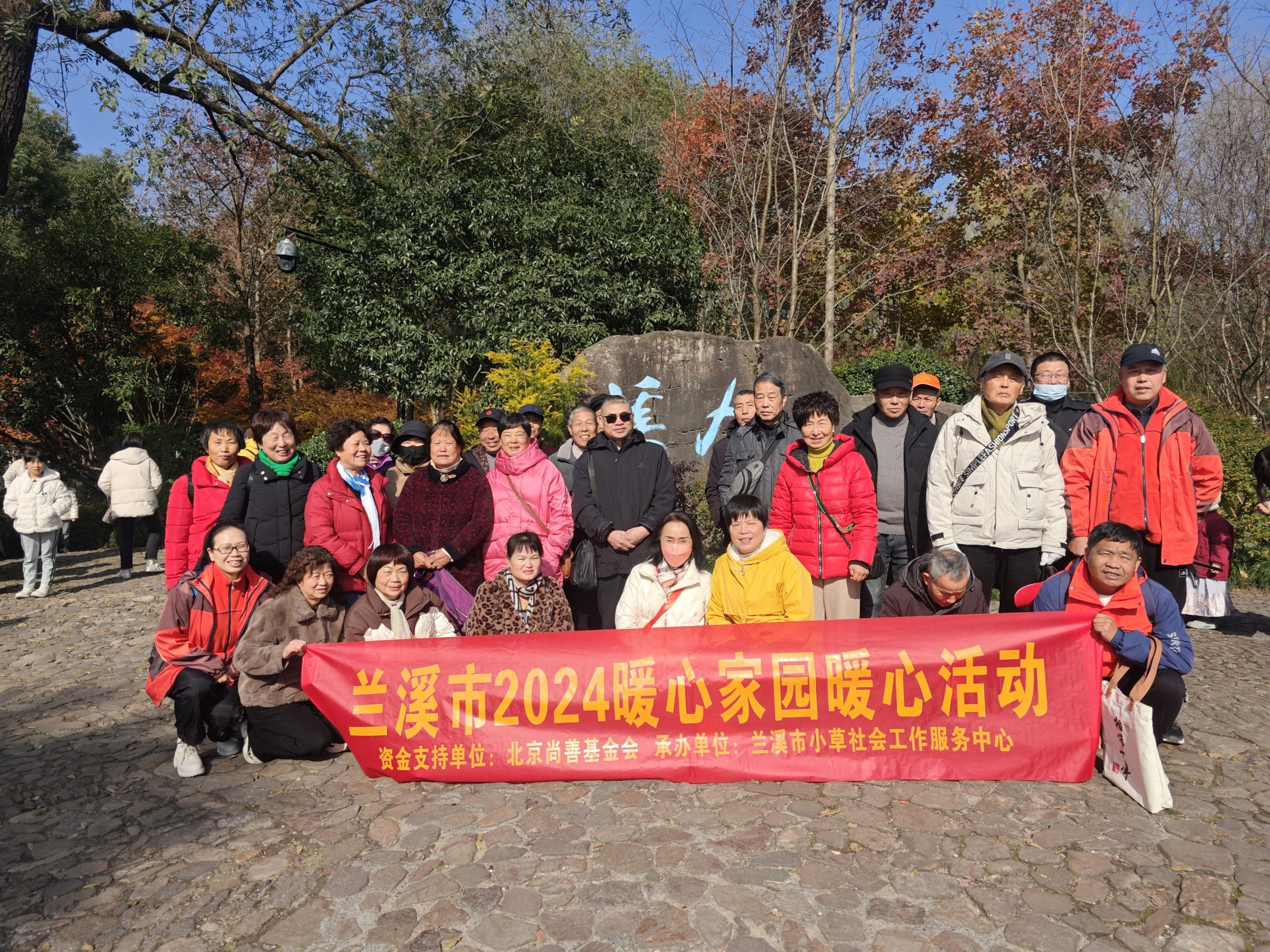 12月15日,阳光洒下,温暖而明媚,正是出游的好时光。家人们相约来到杭州九溪公园,在北京尚善基金会的支持下,由兰溪市小草社会工作服务中心精心组织,这是一场期待已久的红枫之约。