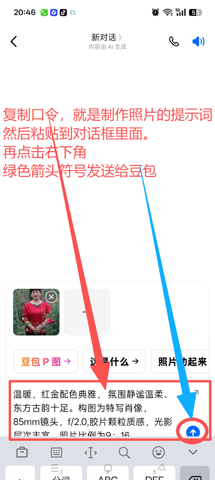 写真照一定要用正面半身照。“豆包”是在手机里的“应用市场”或者“应用商店”免费下载安装。图八是成功男士的写真提示词。记得选对自己喜欢的图片比例