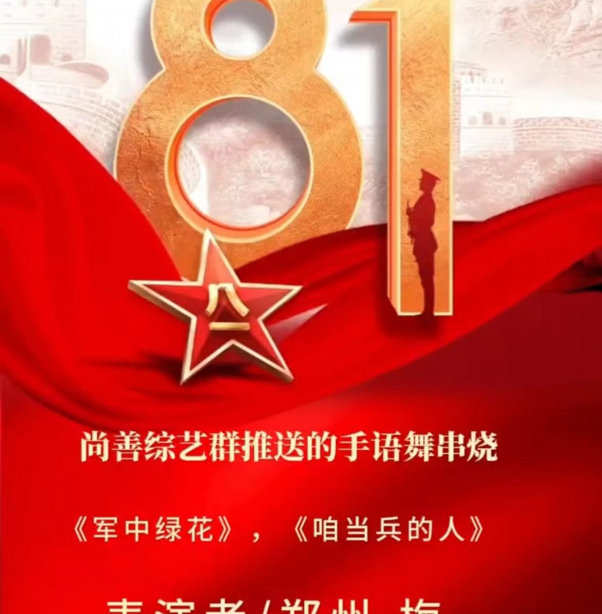 8.尚善综艺群手语舞《军中绿花》、《咱当兵的人》表演:郑州.梅