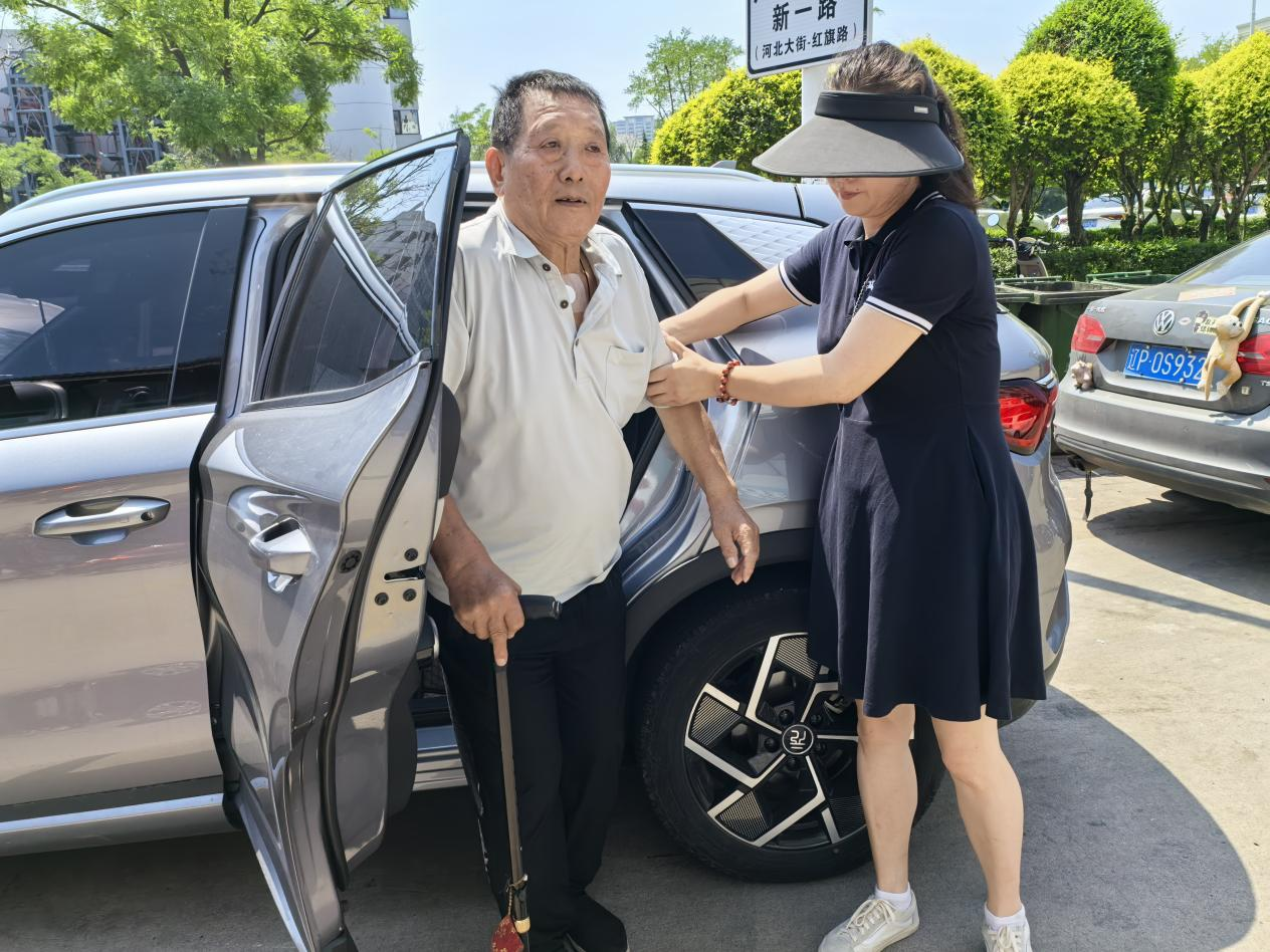 至爱员工上午10点从家接到部大哥,又检查佩戴,看到中午12点多了,每天正是部哥给全家做饭的时候,为部大哥回家不用在着忙,至爱员工自掏腰包买好三份午餐,给部大哥,并一路安全的送部大哥回到家中。