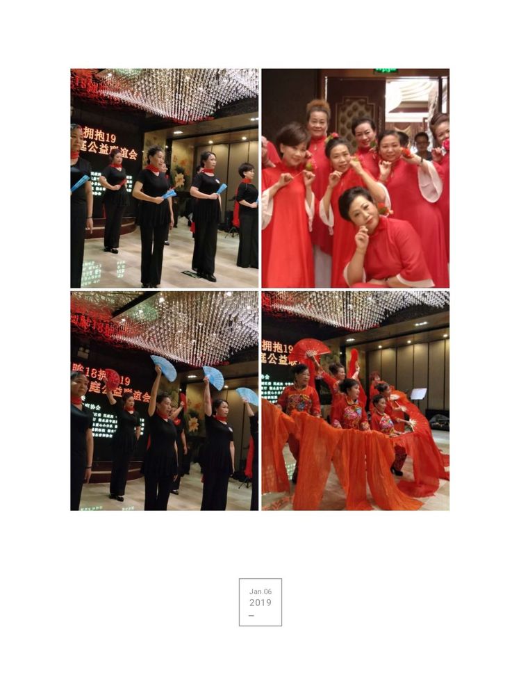 (特殊家庭星愿演义队),以多元化,丰富多彩的旗袍秀,独唱,三句半,彩巾表演,击鼓传花,引人入胜,把阴霾驱散,协会又组织为年末,岁首生日的老人集体生日祝福甜甜的暖心大蛋糕,共同分享生日祝福,把温馨氛围推向高潮,她们展现自我同时也把快乐传递与大家。彰显亲情一家人暖心氛围。