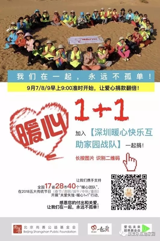此次暧心重阳节活动安排了出游赏秋、登高远眺及太极拳交流活动,主要目的就是增进友谊、互敬互爱、相互了解;借此机会,我们将开展99公益日活动的介绍宣传工作,让大家更多了解99公益项目。
