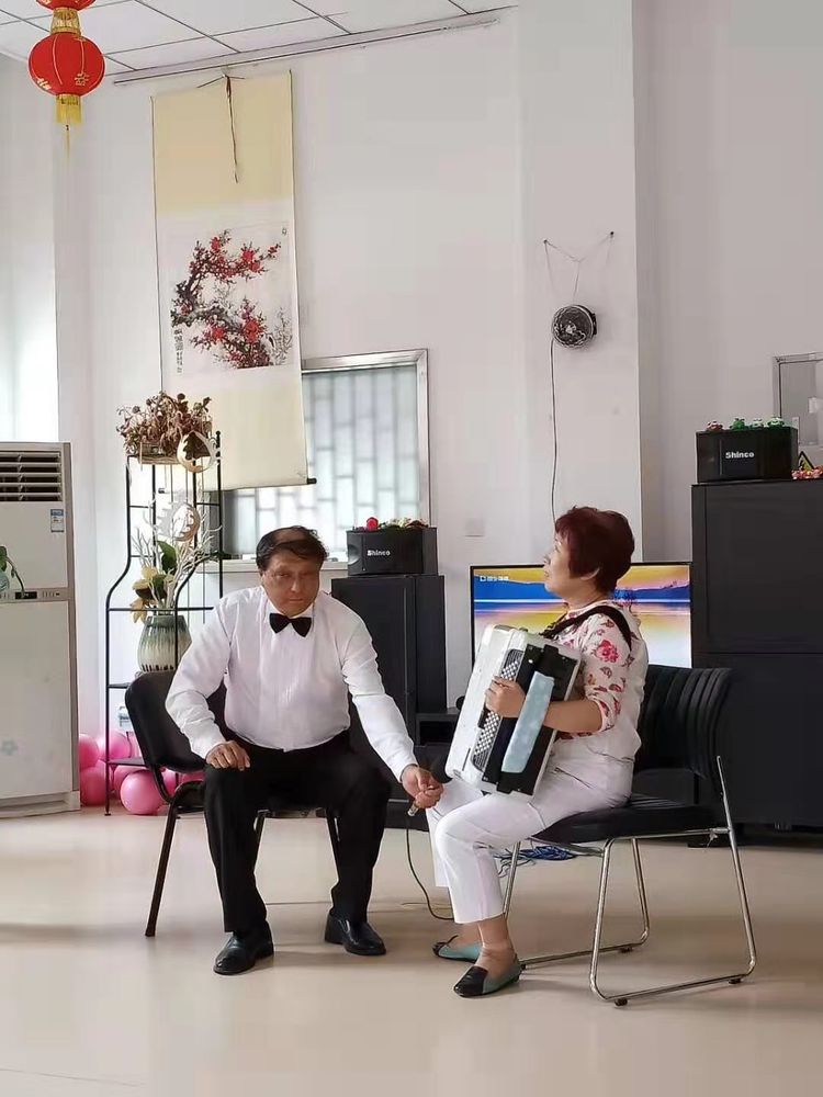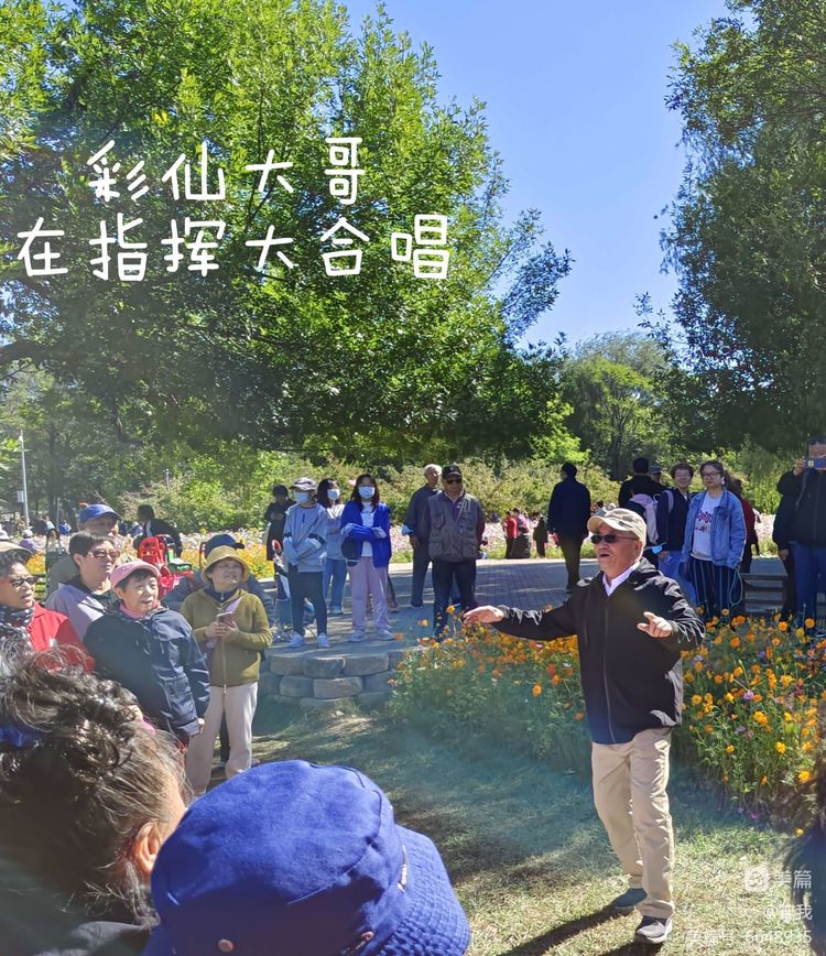 尚善原《心之声合唱团》团长彩仙大哥和老伴富珍大姐,特意从养老院请假,不辞辛劳,专程赶来参加活动。彩仙大哥将指挥百位老人在园区合唱《最美不过夕阳红》。