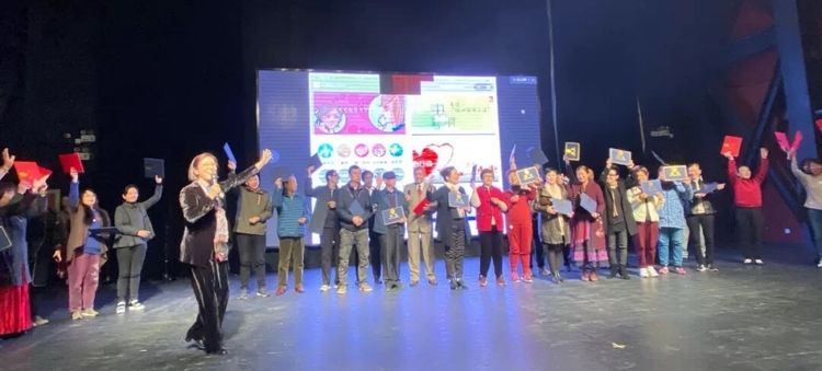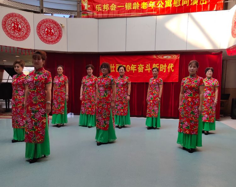 “波斯菊”花圃的平台上,多位”美女”家人,红裙艳裹,在天高云谈吹奏的萨克斯《画你》的乐声中,翩翩起舞,舒情展姿,为敬老助老的暖心节日,增添了温馨祥和……。在此,毛爱珍理事长向网络会场嘉宾和公益伙伴,发出了倡导和致意。