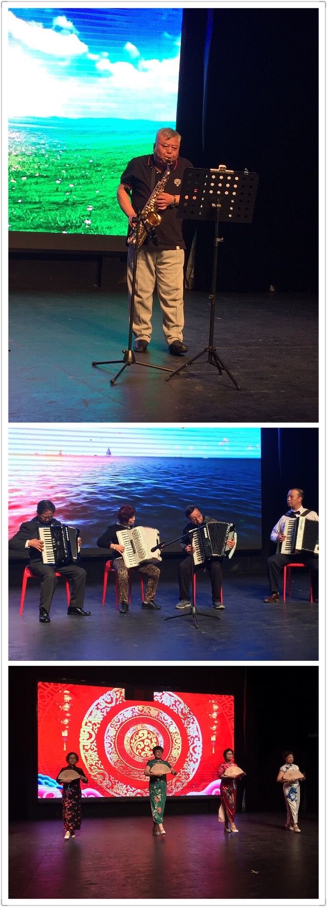 研讨会后,大家同台献艺,尽兴表演,太极、走秀、朗颂、手语舞蹈、京剧京歌清唱、大合唱等节目,精短倾心,阳光向上,真情展露;新老朋友都感受到了,同命人一家亲的无拘无束和温暖融恰……。