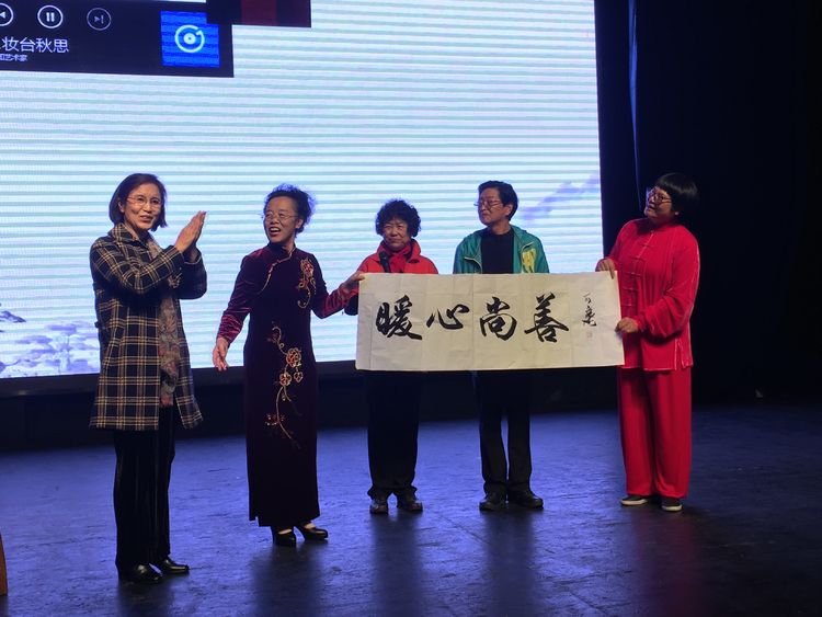 大家熟悉的七十多岁的毕老师和夫人苗大姐这次克服身体困难,亲临现场参与表演。毕老师现场挥毫“暖心尚善”四个字赠予尚善。