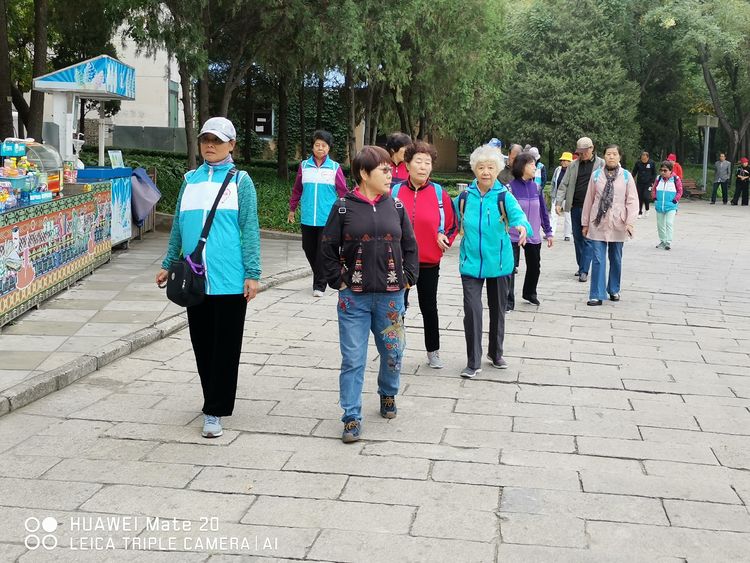 九时许,公园内,三公里健行赏秋赏花活动开始,在基金会毛爱珍理事长的引领下,失独老人们踊跃健步,在树影婆娑,鲜花满目的步道上,健心前行。