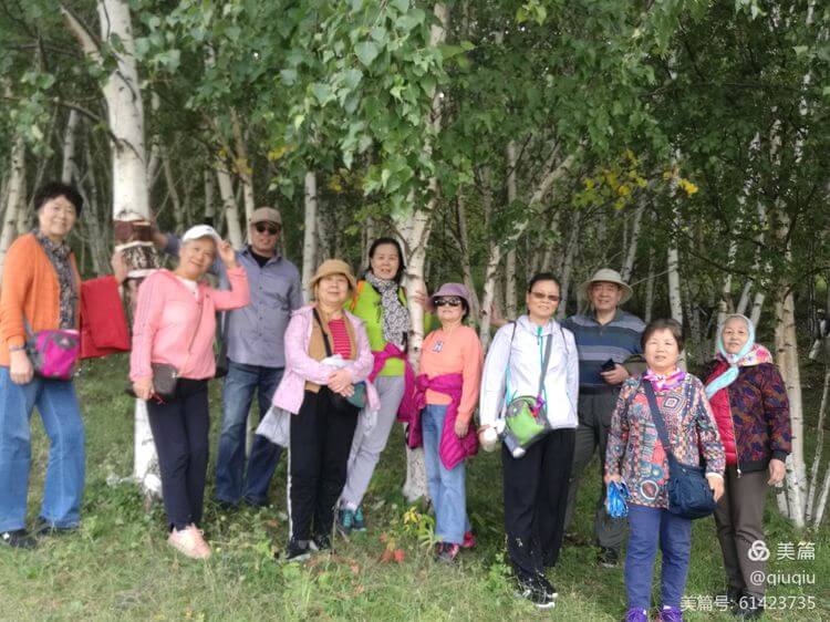 结束上午的公益捐款活动后,家人们来到附近的白桦林:放飞心情、与草原说再见!