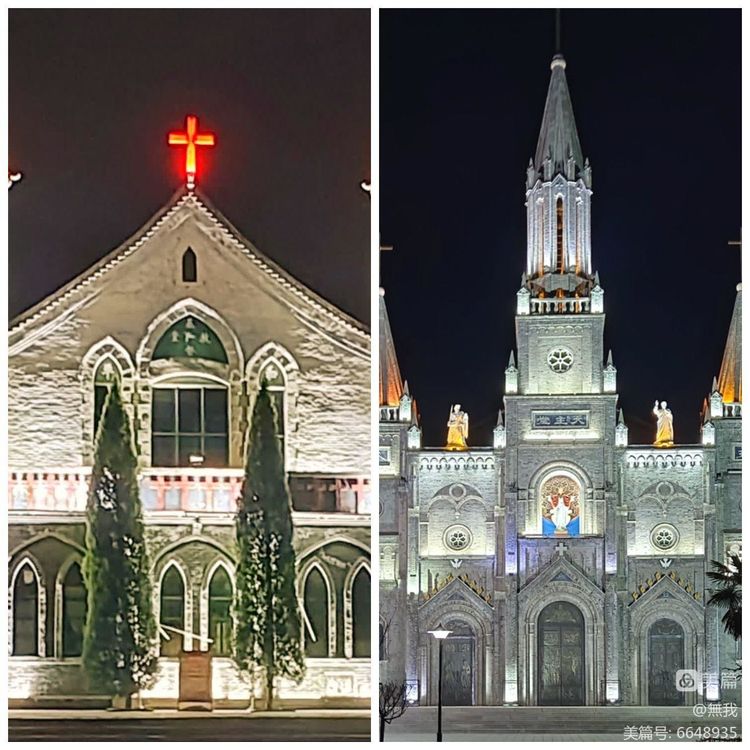 古城夜幕中的教堂