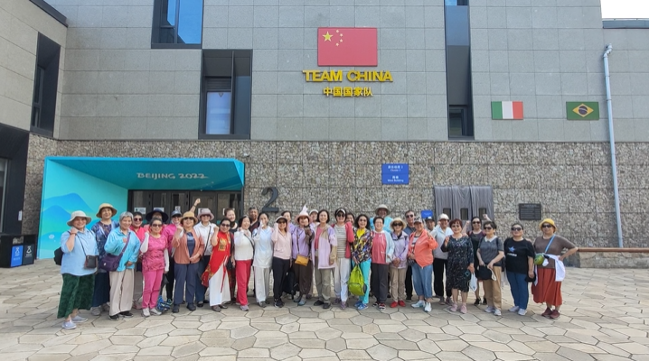 午餐后大家来到奥林匹克公园参观。北京延庆奥林匹克园区位于北京第二高峰小海坨山谷之间,是北京2022冬奥会高山滑雪和雪撬比赛场地,由雪飞燕、雪游龙和冬奥村组成,现成为全国户外休闲度假旅游区。