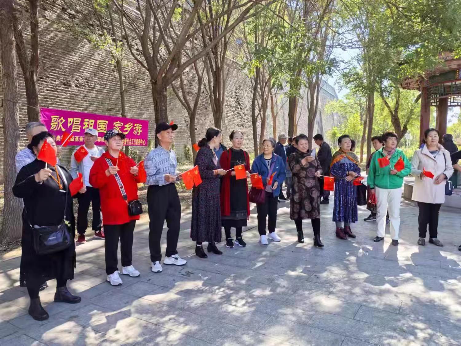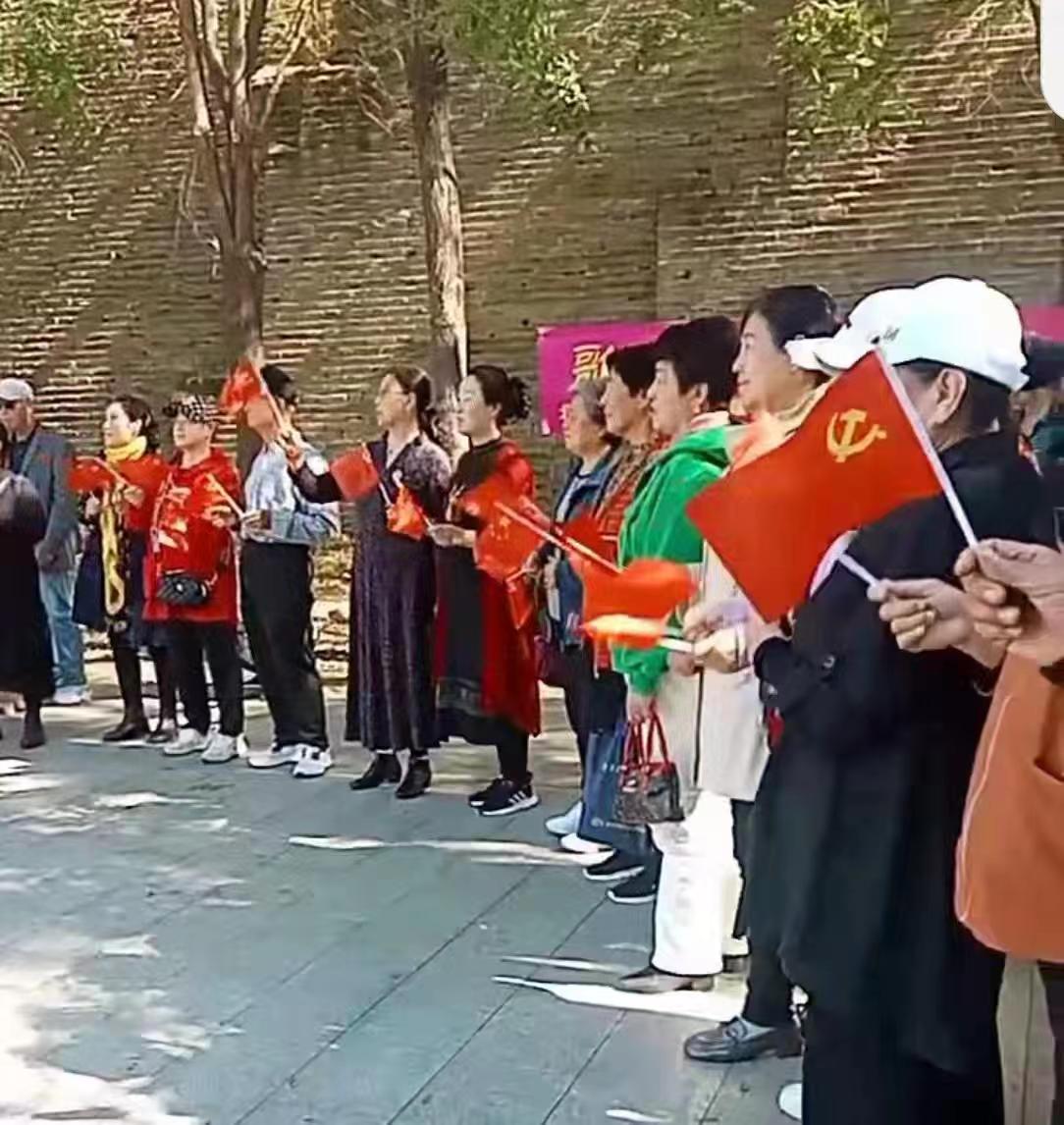 悠扬的歌声在古老的城垣之间回荡,穿透力极强,似乎要将这份浓烈的爱国情怀传递给每一位过往的行人,感染着在场的每一位参与者。在这座承载着厚重历史记忆的山海关西城门下,失独父母们暂时抛开了内心的伤痛与孤独,他们脸上的笑容真挚而感人,仿佛此刻全世界的关心和温暖都凝聚在了这一片欢聚的场景之中。这份简单而纯粹的快乐,不仅是对祖国生日的献礼,更是社会各界对失独家庭关爱和支持的具体体现。