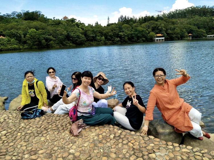 家人们抵达山顶自由活动,休息、拍照,其乐融融