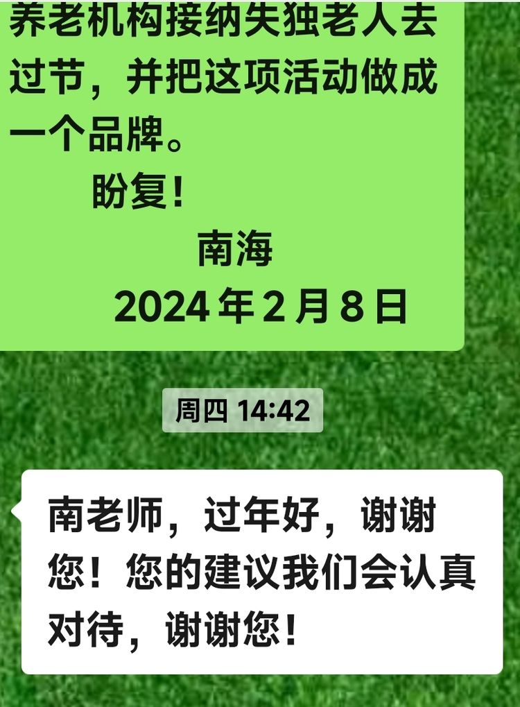 郑志刚博士与北京尚善公益基金会联袂在全国范围内发起的养老机构接纳失独老人去过年的倡议,给了我很大的启发。与元文商议之后,我们向之前早有联系的悦华安养淄博区域的孟总提出了请求。孟总是一位非常善良的爱心人士,她立即向集团总部报告请示,得到了集团总部的支持,然后与平院长一起把除夕活动的细节与我们进行了认真商確。