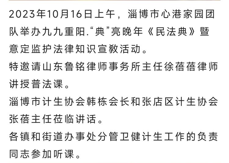 淄博市心港家园 学习《民法典》意定监护 法律知识讲座