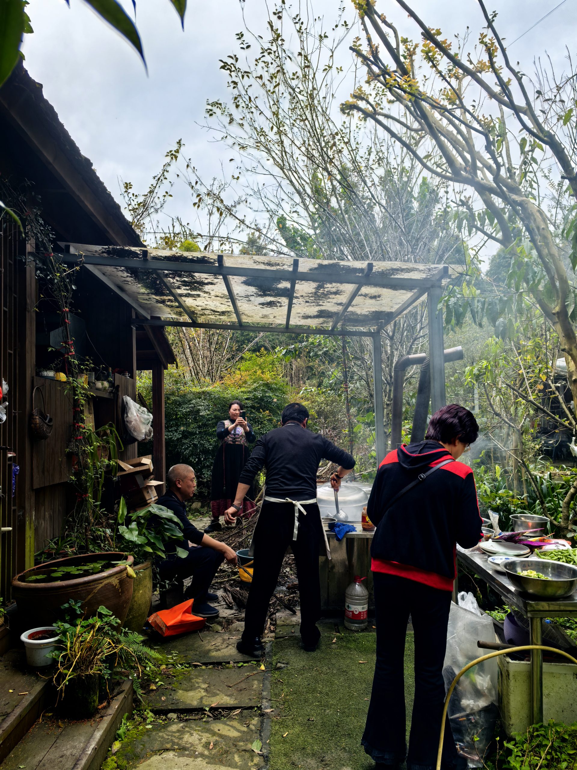 在游园的过程中,男士们自发帮助瓶子姐姐收拾枯树枝和杂草,展现出团结互助的精神;而女士们则悠闲地在花园中游览,享受这难得的宁静与美好。这样的互动不仅增进了彼此的感情,也让大家在忙碌的生活中找到了放松的时刻。