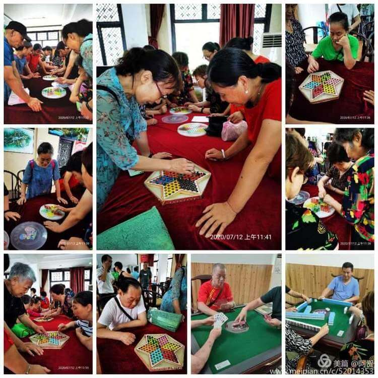 全神贯注聚精会神的跳子棋比赛和麻将,字牌进行中